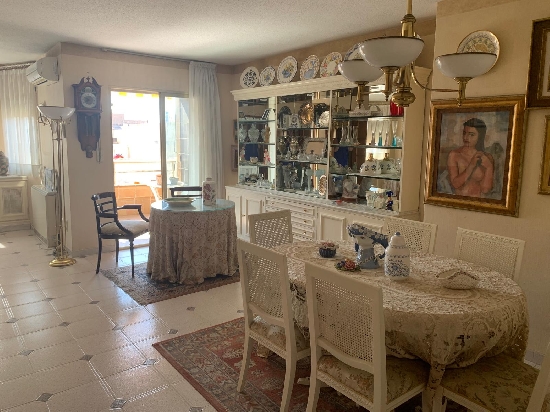 Benicarlo, C/ Hernán Cortes, (próximo al Mercado). Se vende piso de 153 m2, Con 4 habitaciones, 2 baños uno en suite, cocina independiente, amplio lavadero, despensa, salón con salida a la terraza de 10 m2 y plaza de garaje. Es una 4ª planta con ascensor . Construido el año 1990. Orientación Sur.
