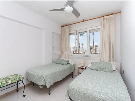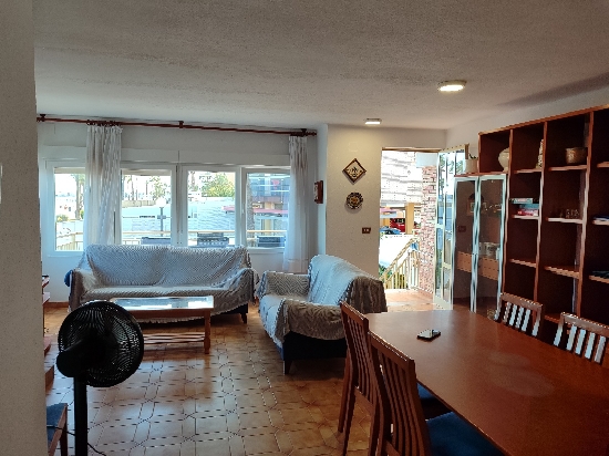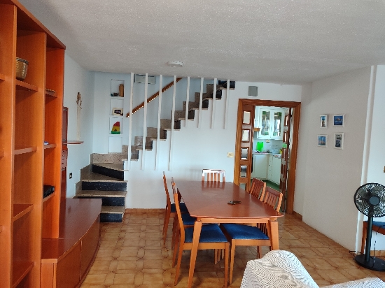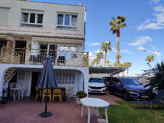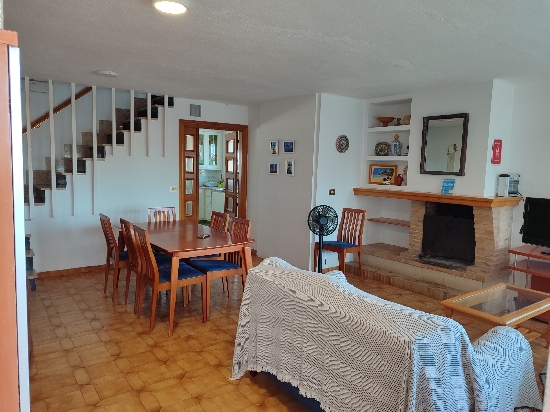 PEÑISCOLA (Avd. PAPA LUNA), PRIMERA LINEA DE PLAYA ADOSADO DE 6 HABITACIONES + PARKING PARA 4 COCHES + 2 TERRAZAS Y JARDIN Magnifica casa adosada a la venta en primera línea de Playa Peñíscola, vistas espectaculares, muy cerca al centro, tiene aparcamiento privado hasta para 4 coches. Es un terreno de 202 m2, y 155 m2 construidos, con planta baja mas dos plantas superiores, que están distribuidas de la siguiente forma: En la planta baja un apartamento privado de dos dormitorios, 2 baños de los cuales ,uno está en la Suite y tiene bañera. La planta primera consta de Salón comedor y gran terraza con increíbles vistas al castillo y a la mar, cocina grande equipada y mucho espacio de almacenaje, vistas inmejorables; la segunda planta consta de 4 dormitorios, todos con vistas, 2 baños (Uno de ellos completo con plato de ducha). Todos los dormitorios y la cocina tienen ventiladores de techo. La casa cuenta con barbacoa, y un buen espacio de jardín con terraza. Orientación sur-este. chimenea.